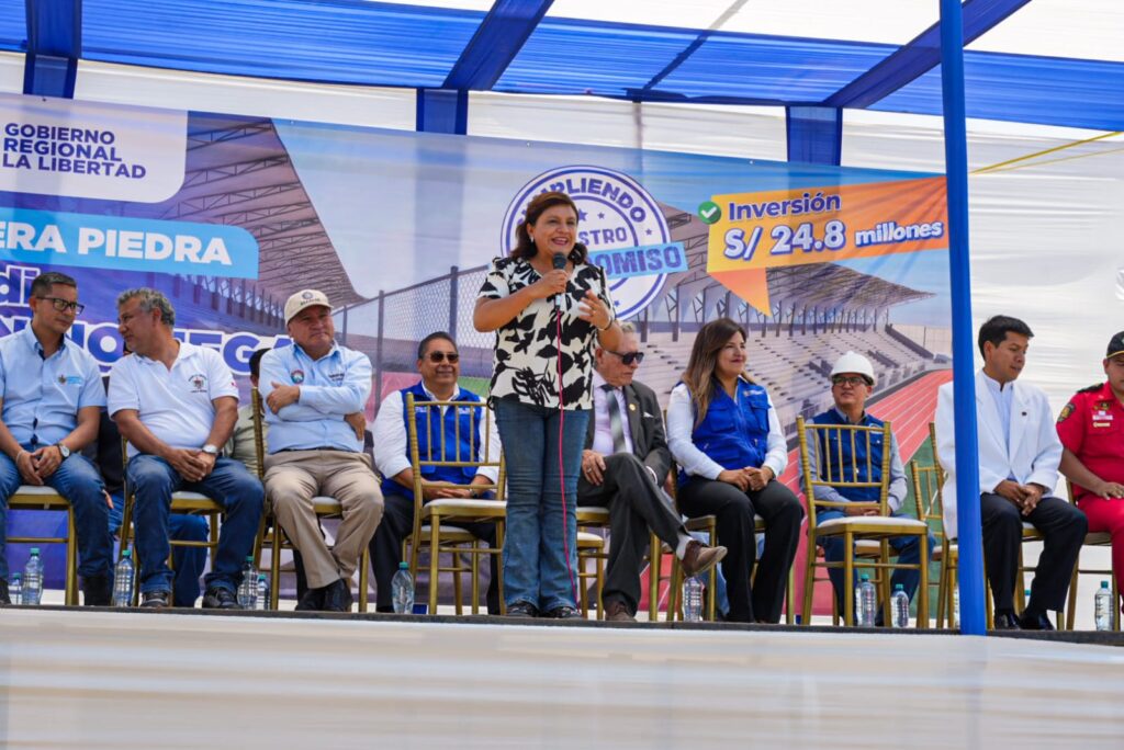 La gobernadora regional Joana Cabrera colocó la primera piedra del nuevo estadio Juan Noriega Salazar, una obra emblemática de casi S/ 25 millones que modernizará la infraestructura deportiva de Chepén y beneficiará a niños y jóvenes deportistas.